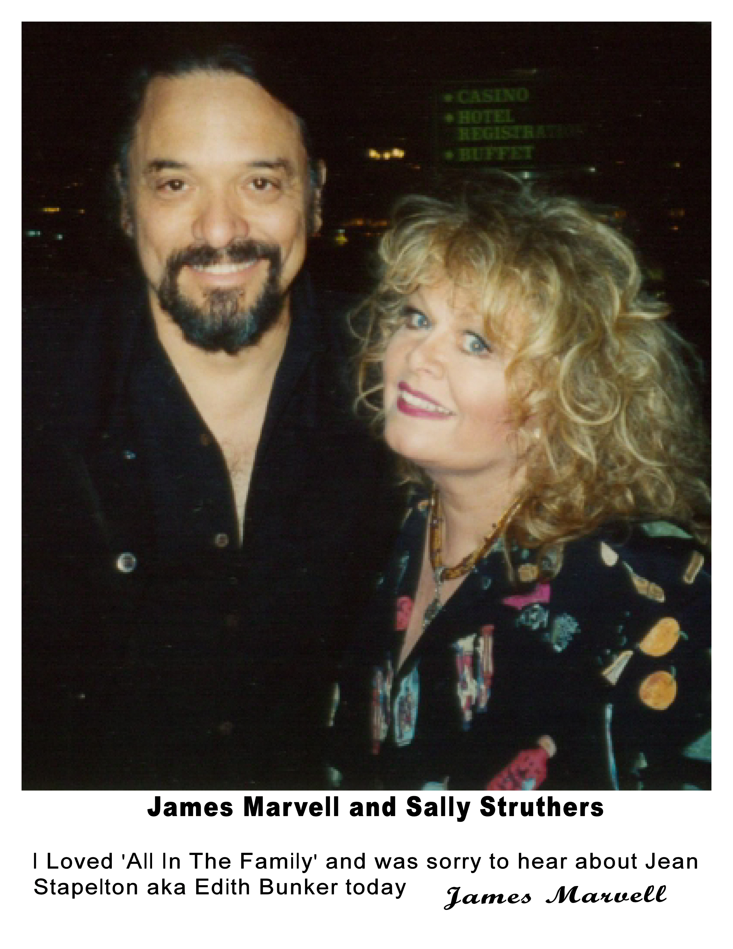 Sally Struthers and James Marvell Published June 5, 2013 | By JasonR Sally Struthers and James Marvell Share this:ShareFacebookTwitterLinkedInPrintFull size is 2550 × 3300 pixels Country Cavaleers with Hank Snow and Kenny Rogers - James Marvell and Buddy Good » « OTIS REDDING - SITTIN' ON THE DOCK OF THE BAY - Vinyl 45 - UK BLUE STAX ISSUE